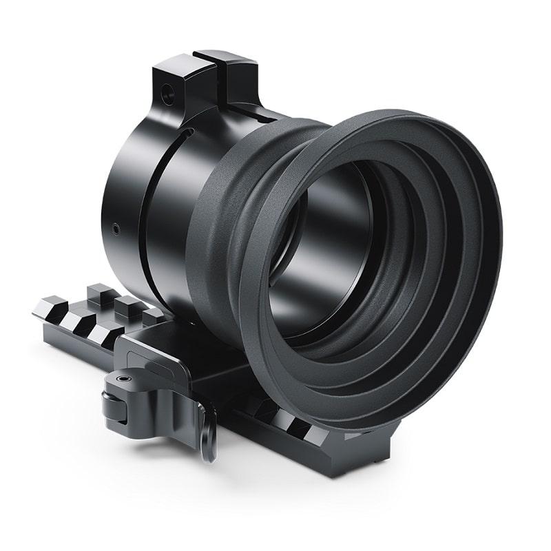 Das Montieren erfolgt binnen Sekunden durch die praktische Hebelklemme. Die Ausrichtung der Geräte passt sich optimal auf die optischen Achsen an. Durch die spezielle Vorrichtung wird der Monitor des Wärmebildgerätes optimal im Sichtfeld eingeblendet.